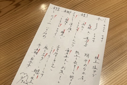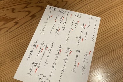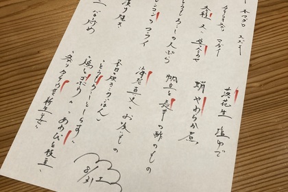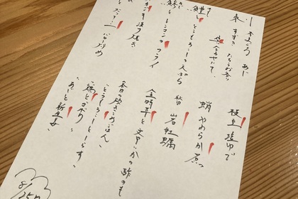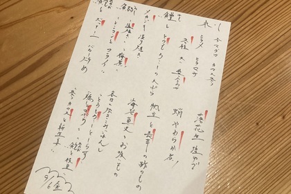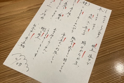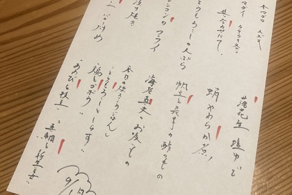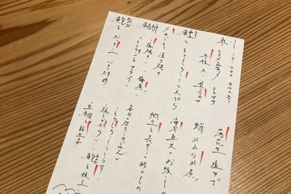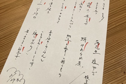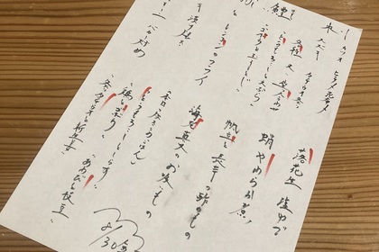 その日仕入れた食材による日替わりアラカルトメニューです