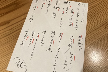 その日仕入れた食材による日替わりアラカルトメニューです