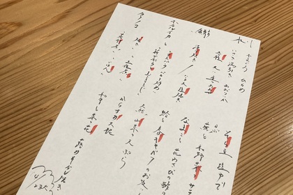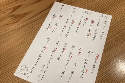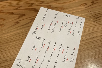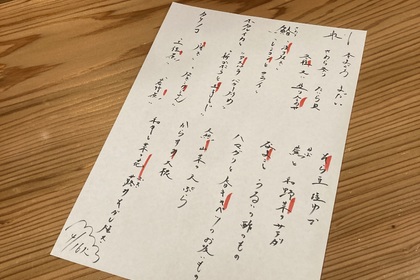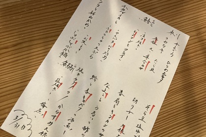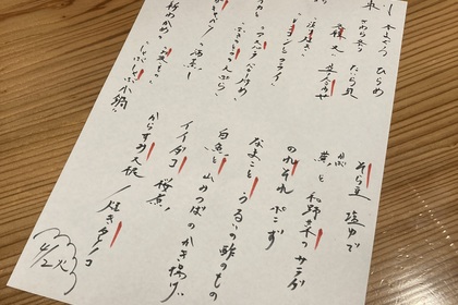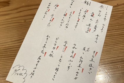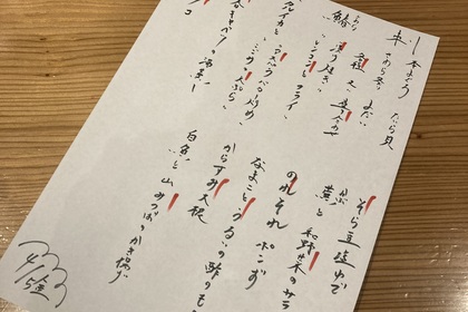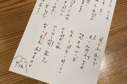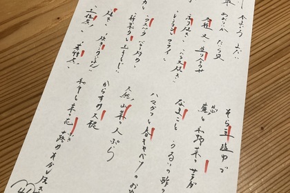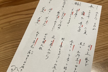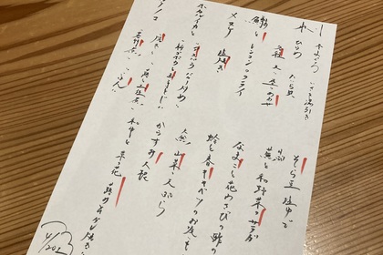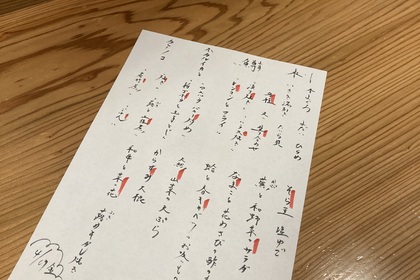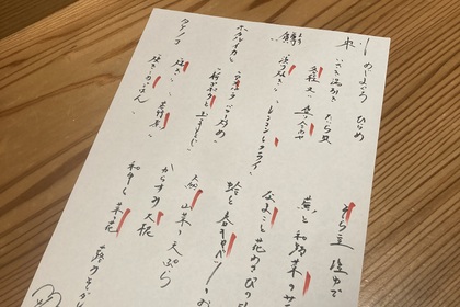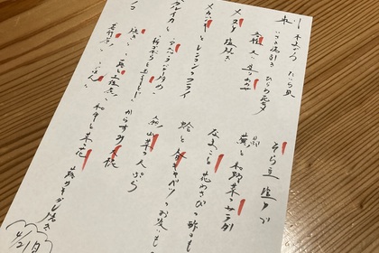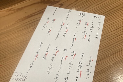その日仕入れた食材による日替わりアラカルトメニューです