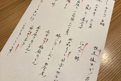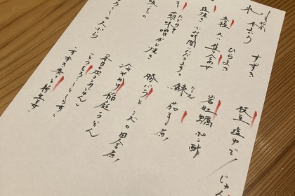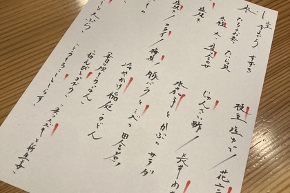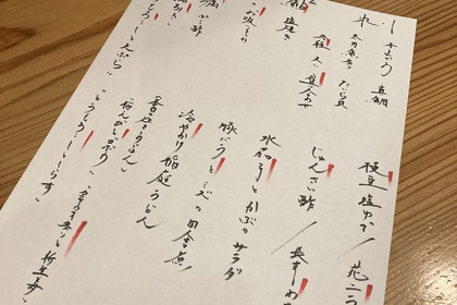 その日仕入れた食材による日替わりアラカルトメニューです
