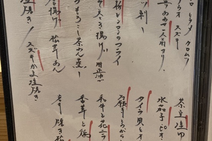 その日仕入れた食材による日替わりアラカルトメニューです