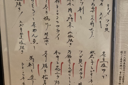 軽いおつまみから〆のお食事まで、その日の仕入れによって日替わりでアラカルトメニューをご用意しております。コース料理も承ります。