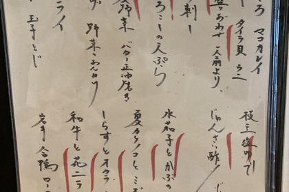 その日仕入れた食材による日替わりアラカルトメニューです