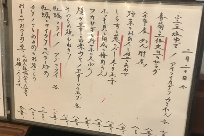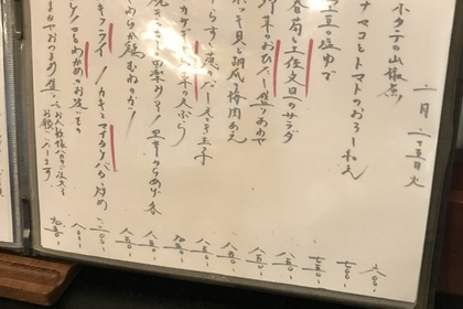 その日仕入れた食材による日替わりアラカルトメニューです