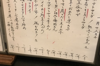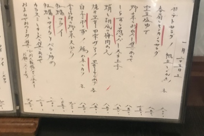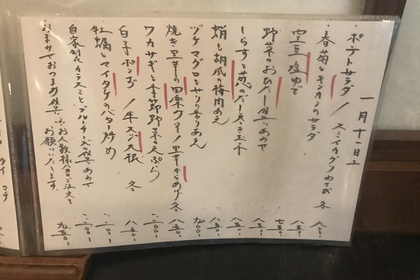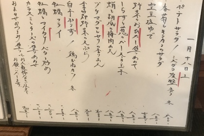 その日仕入れた食材による日替わりアラカルトメニューです