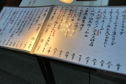 その日仕入れた食材による日替わりアラカルトメニューです