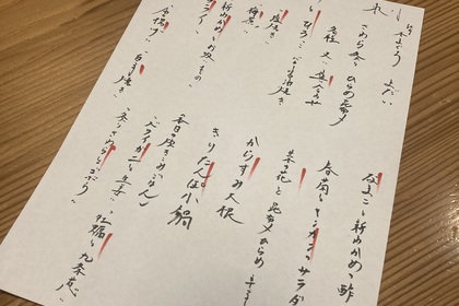 その日仕入れた食材による日替わりアラカルトメニューです